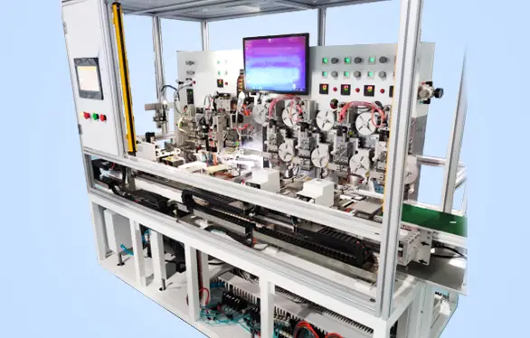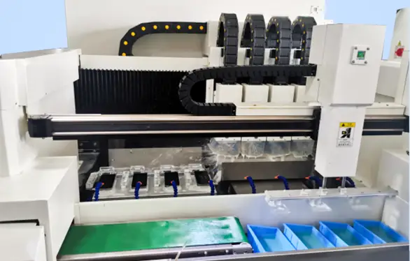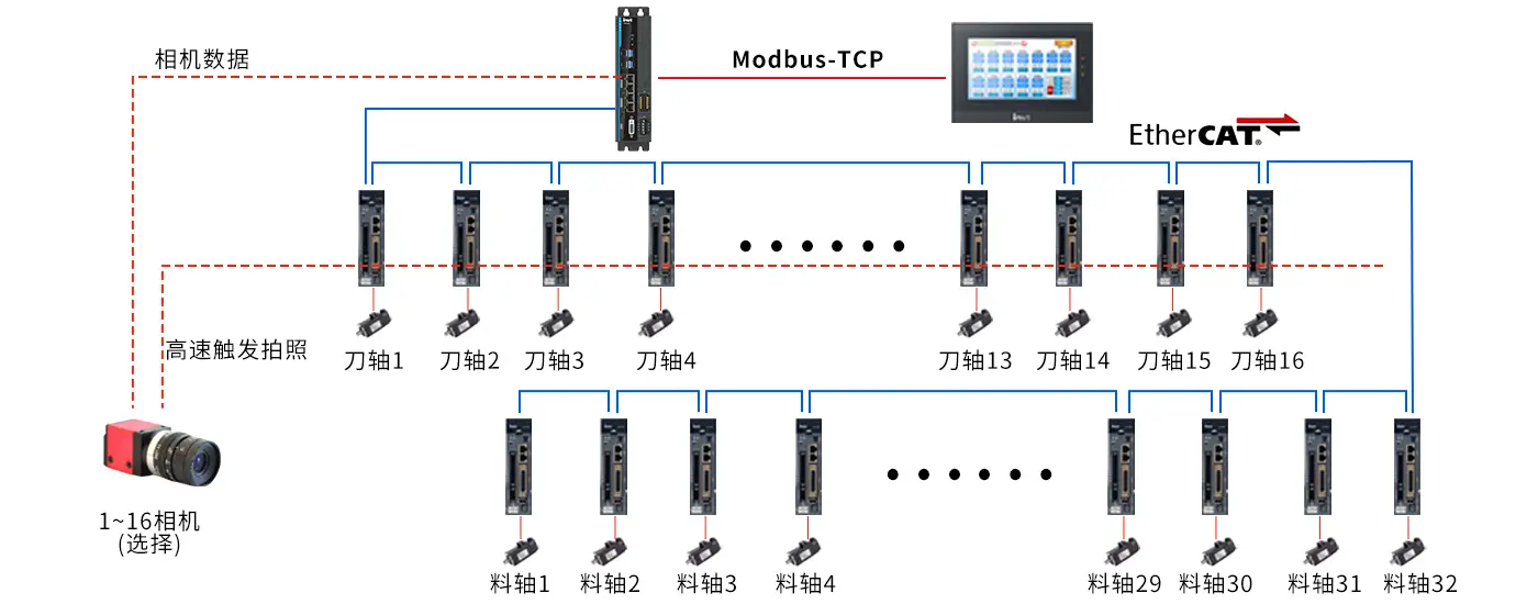 LED分光机对位置精度及响应时间要求非常苛刻。在整个机台中,关键有两个工位:转盘轴和检测轴。转盘轴要求高刚性、高速度、高响应,其他伺服品牌选送的一般为750W轻惯量的马达,刚性提升空间有限。XCTIMES通过科学精确的计算,开创性的为该行业定制了专用马达,并选用了DA200系列高性能伺服驱动器配合先进的算法,以满足并超过客户预期效果。通过定制化的大扭矩伺服马达,使得该轴的刚性有了显著的提升,静止时(serve on)用手触摸,没有任何振感,客户对这个效果非常满意。XCTIMES选用的DA200系列伺服搭配23Bit(8388608PPR)绝对值编码器,可以满足设备高精度定位控制和稳低速运转时的应用需求。实际调试的结果是指令时间11.875ms,转盘轴伺服定位完成13ms,整定时间不到2ms,滞留脉冲为0个pulse,好过客户要求的整定时间5ms,位置误差2个pulse。