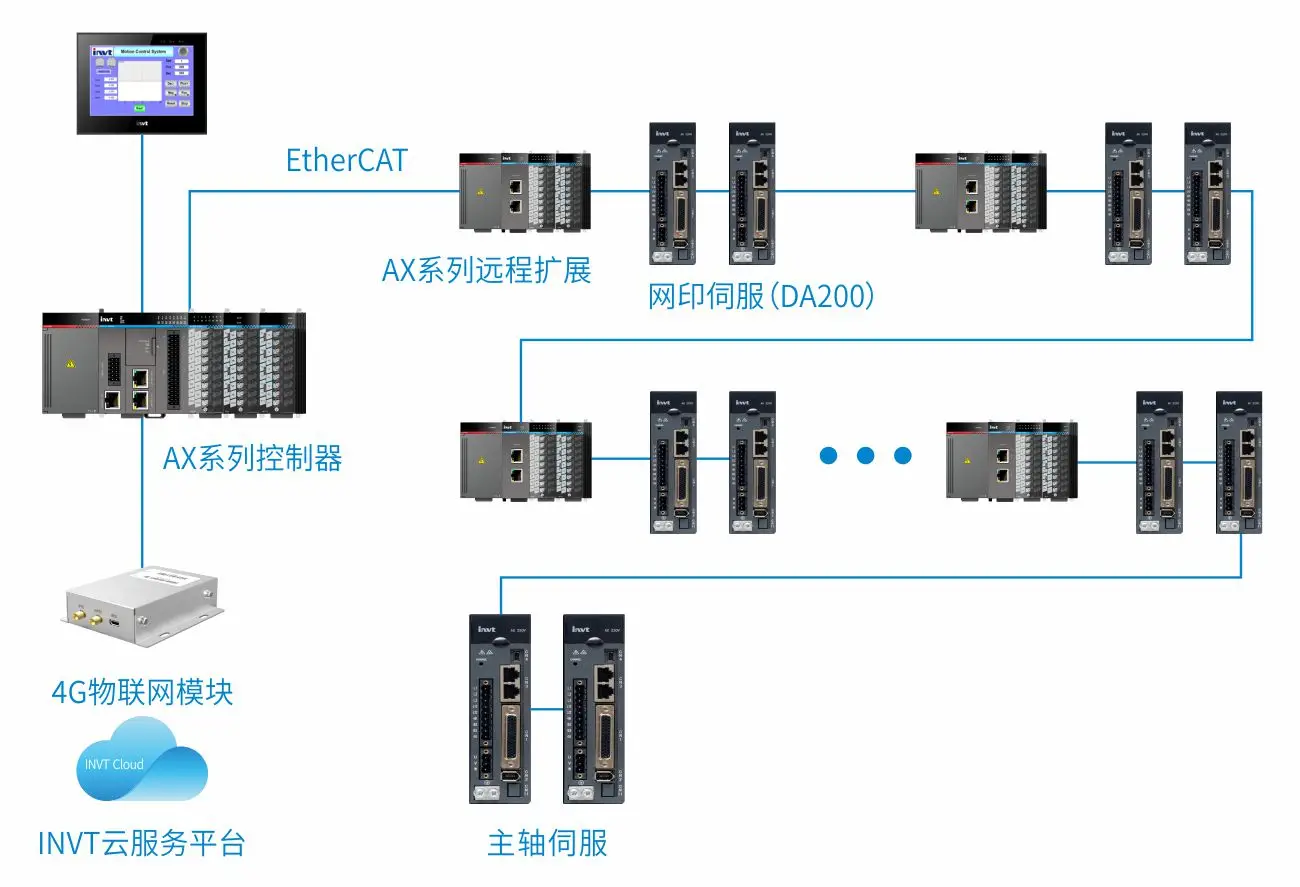 方便接线,本方案采用CANOEPN总线方案,控制器与各执行驱动器通过网线互联,节约大量接线,提高了生产效率;